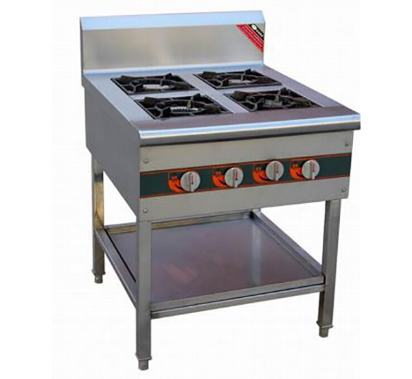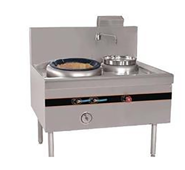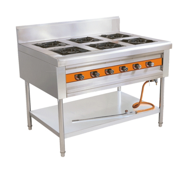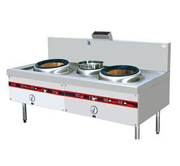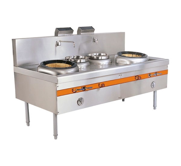 中餐廚具 氣式爐灶按燃燒方式又分為大氣式和鼓風(fēng)式。大氣式爐具主要用于不需要太強火力,處于明檔場所的廚房,其燃燒器主要有:強力爐頭、光能爐頭、引射爐頭、立管式爐頭、打交爐頭、盤管爐頭等等;鼓風(fēng)式爐具需要配套中壓風(fēng)機,火力較猛,目前我公司主要是按爐具的主火情況來配置風(fēng)機,如:雙頭炒爐就配220V/250W的風(fēng)機(此風(fēng)機在華南稱為E2型風(fēng)機)兩臺,單頭炒爐配220V/250W的風(fēng)機一臺等等。其燃燒器主要為溝風(fēng)爐頭:按大小分為3英寸、4英寸、5英寸;按給氧方式分為底進風(fēng)和側(cè)進風(fēng)(橫風(fēng))兩種。我公司生產(chǎn)的鼓風(fēng)式爐具均采用風(fēng)、氣同步裝置,便于廚師的使用。
